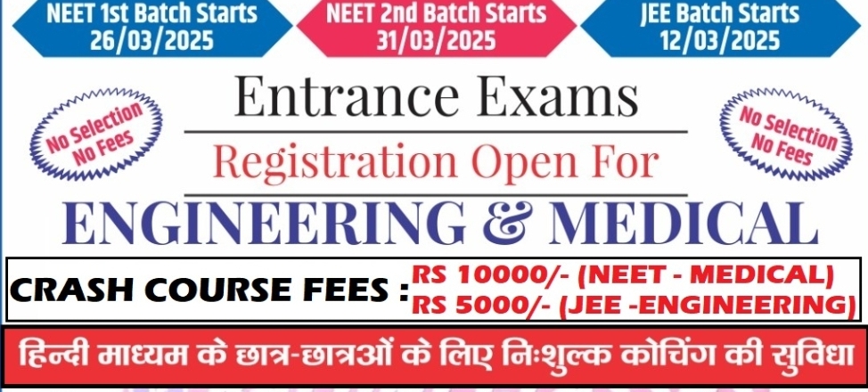 कोटद्वार में बलूनी क्लासेज ने मेडिकल और इंजीनियरिंग के छात्रों के लिए NEET Medical और JEE Engineering क्रेश कोर्स के रजिस्ट्रेशन शुरू कर दिए है। इससे जुड़ी अधिक जानकारी के लिए देवी रोड स्थित ब्रांच में संपर्क किया जा सकता है। बलूनी क्लासेज की डायरेक्टर अभिलाषा भारद्वाज ने बताया कि ये कोर्स कोटद्वार और पहाड़ के हिंदी मीडियम विद्यालय यानी इंटर कॉलेज के बच्चों के लिए फ्री होगा साथ ही शहीद परिवार के बच्चों के लिए भी फ्री होगा।