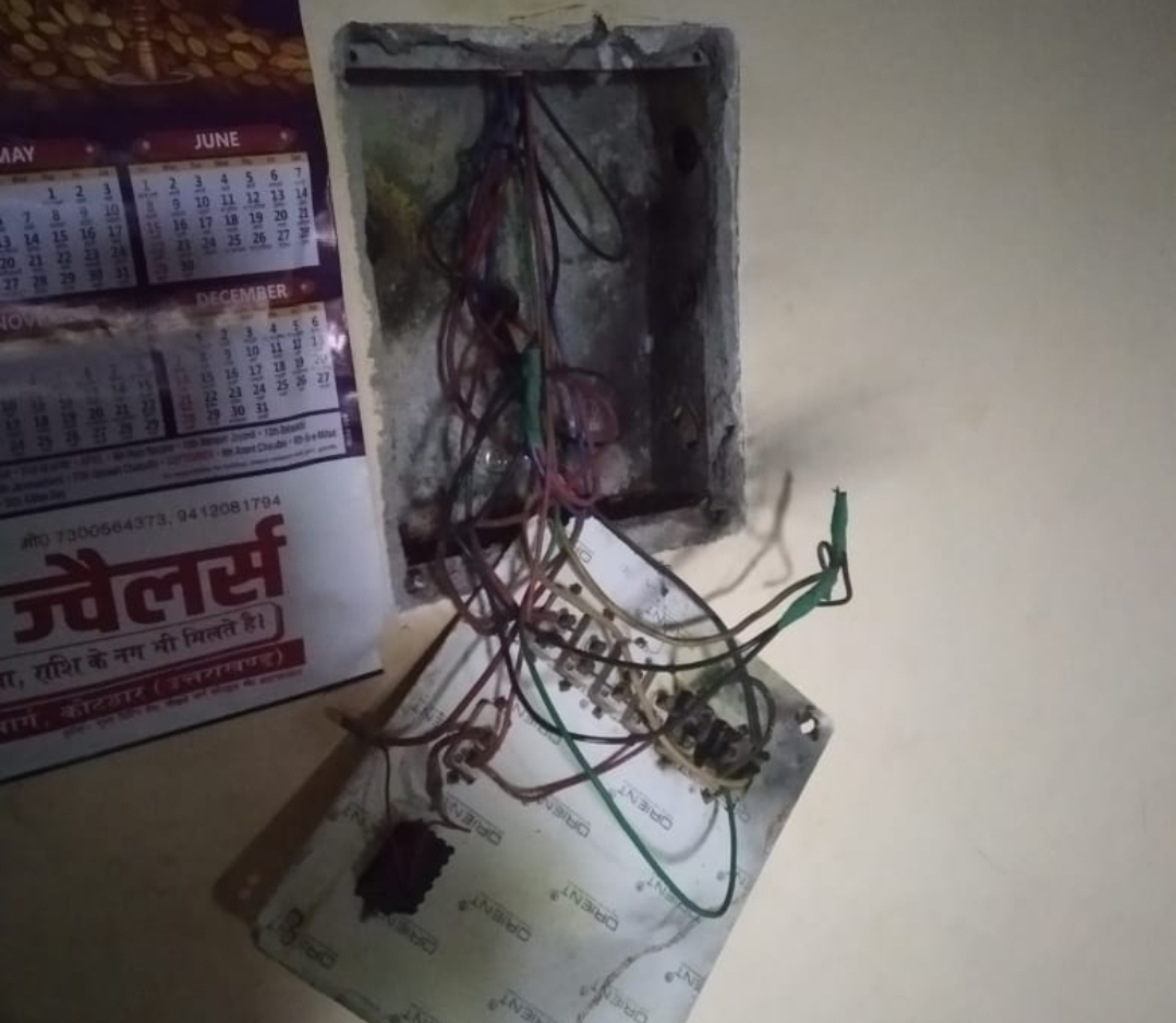 बताया कि दो दिन पहले रात के समय ये विद्युत लाइन उनके घर की सर्विस केबल पर गिर गई, जिससे उनके घर का विद्युत मीटर, पंखे, तार, स्विच बोर्ड सहित इलेक्ट्रॉनिक आइटम जल गए और गनीमत रही कि इस दौरान जानलेवा हादसा नहीं हुआ। घटना के समय घर के भीतर उनकी वृद्ध माता, बहिन और भांजी मौजूद थी, जो हादसे में बाल बाल बचीं। जिसके बाद से वो और उनका परिवार डर के माहौल में है।