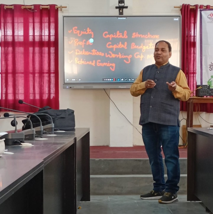 डॉक्टर गुप्ता ने छात्र-छात्राओं को वित्त के प्रकार, उद्यमिता एवं स्टार्टअप में वित्तीय प्रबंधन के महत्व तथा तरीकों को विस्तार से समझाया। उन्होंने पूंजीकरण , पूंजी संरचना तथा पूंजी खर्च बजटिंग पर भी गहनता से चर्चा की।